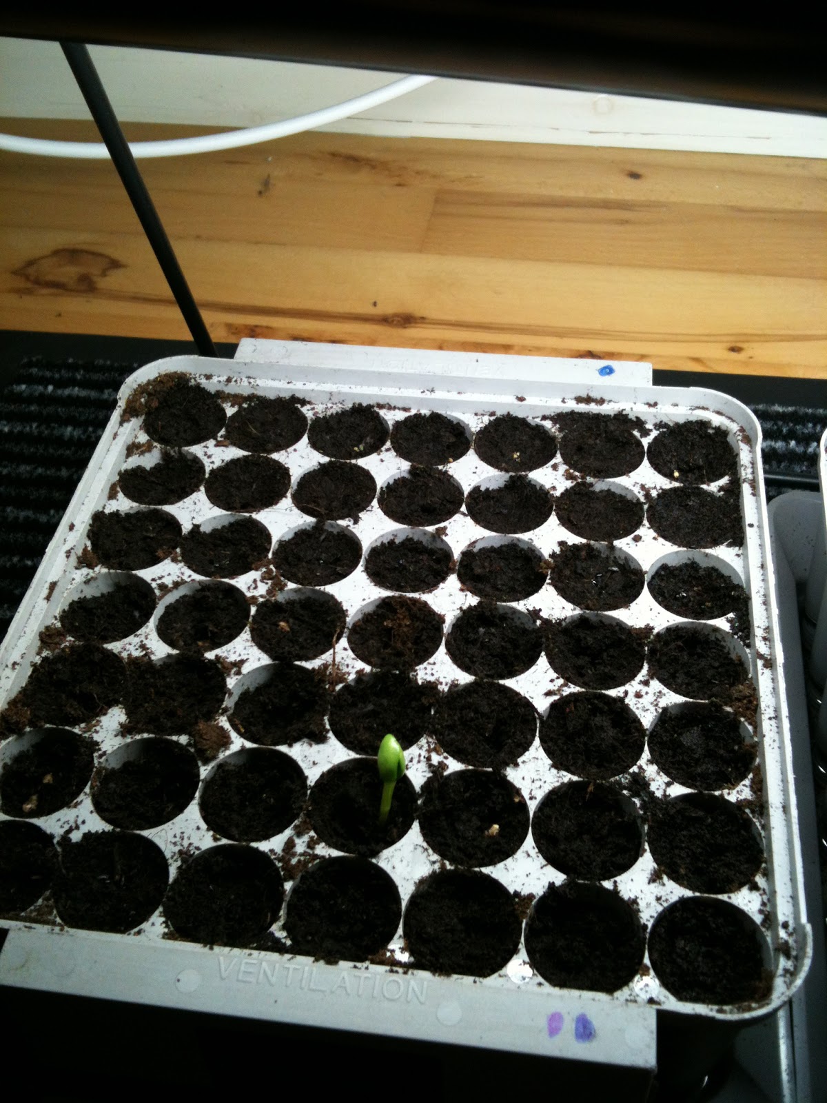 Samme dag skød en enkelt lupin op i kasse 1 (også fra Påfuglen). Det ser ud til, at naboen er på vej op, så det vil jeg vente spændt på den kommende uge.