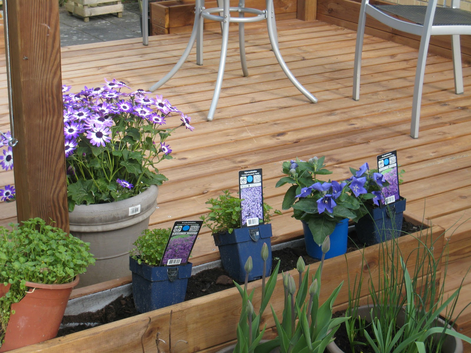 Der er hældt næsten 200 l pottemuld i plantekasserne, men det rakte ikke engang til at fylde den ene halvdel, så jeg må ud og investere i noget mere jord. Og så kommer den sjove opgave: nemlig at finde (og købe) planter at fylde i. Jeg har smugkøbt lidt undervejs, men nu går jagten for alvor i gang.