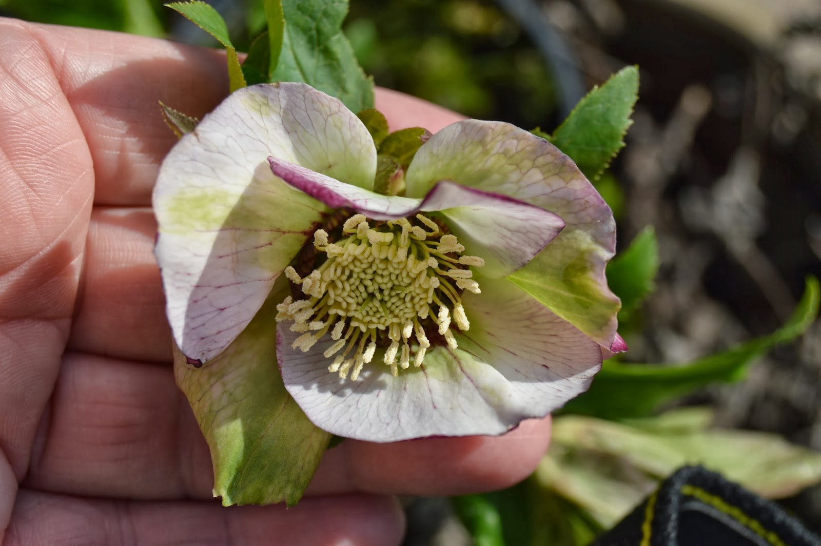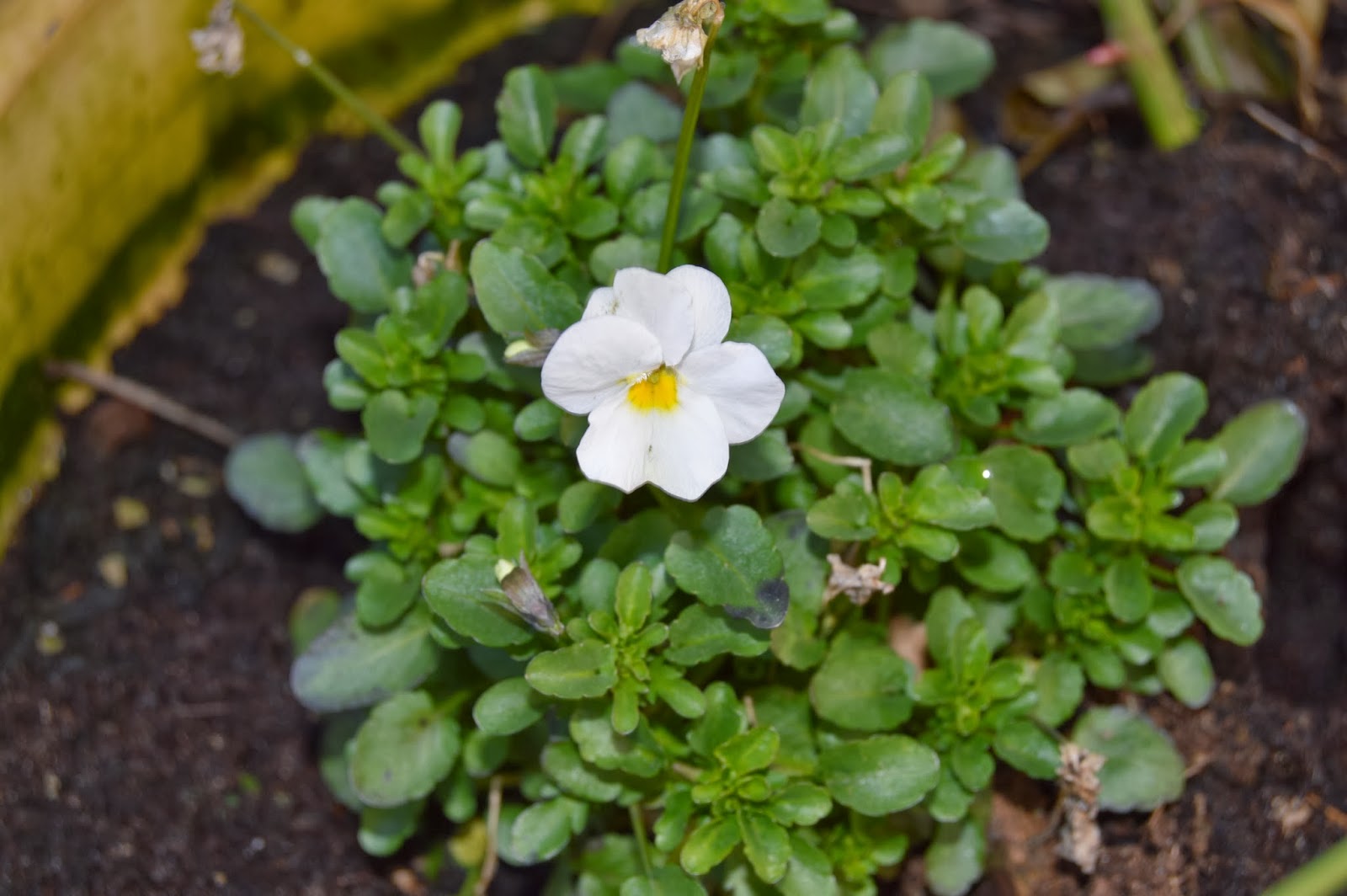 De hvide er selvsåede fra hornviol-displayet på gavlen fra sidste år. Den er da yndig, ik?
