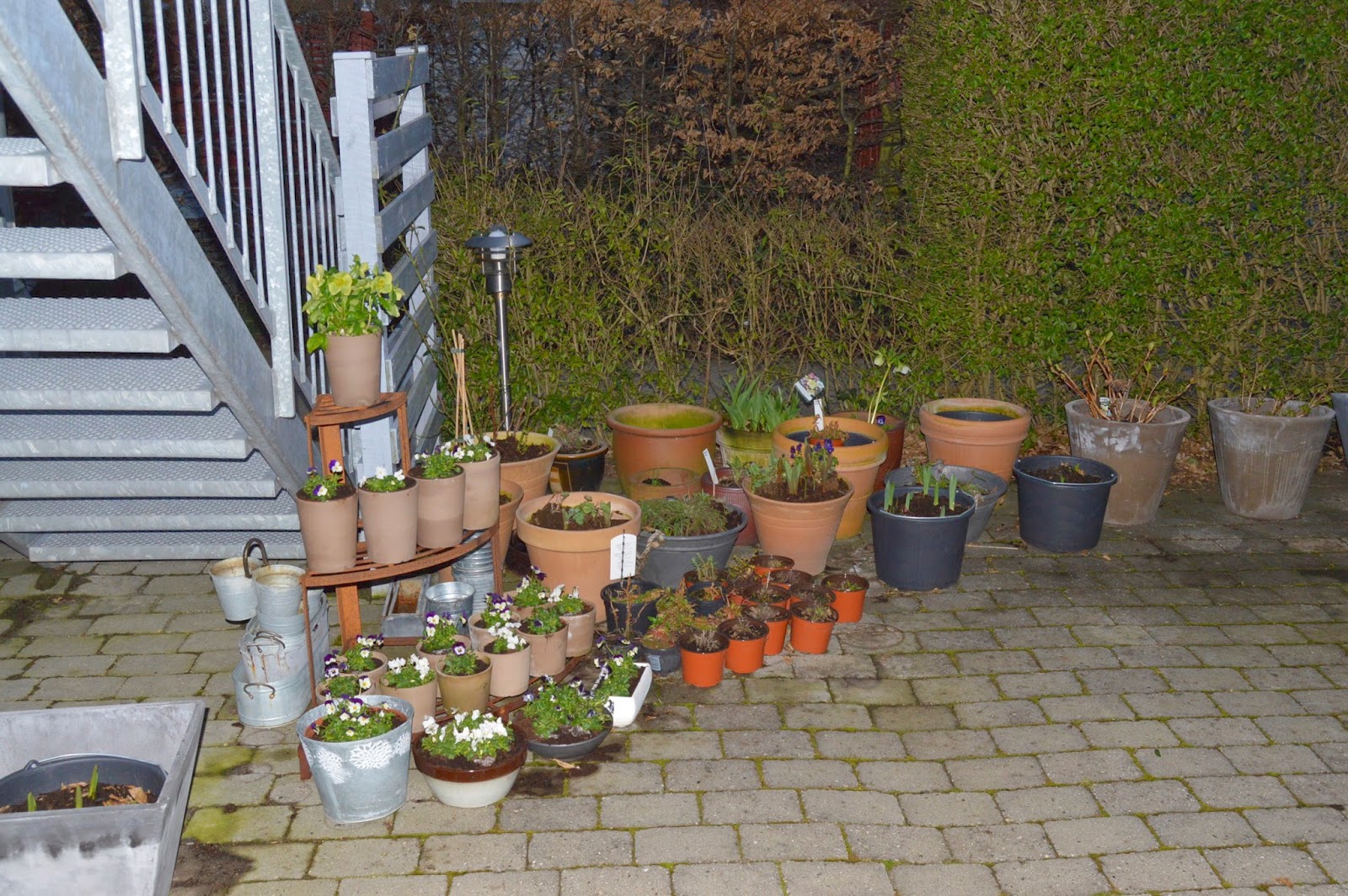 Jeg fik tømt krukker og potter for døde og våde planter - et arbejde, der skulle være gjort i efteråret, men det nåede jeg ikke liiige. Ærgerligt nok, for det har kostet 5 potter livet. Det var billige potter fra Ikea, men alligevel skal jeg nok være lidt mere omhyggelig i år.