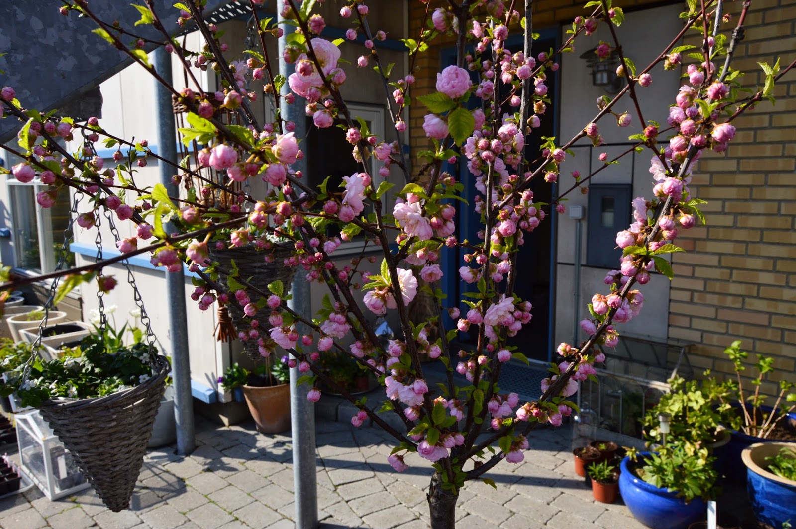 Rosenmandlen er på nippet til at springe ud. Den er nyindkøbt sidste år, og der var kun få blomster på. Denne gang ser det ud til, at der kommer mange flere.